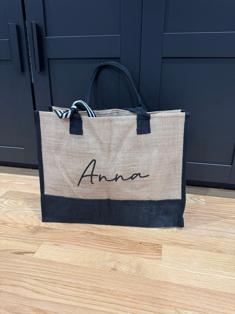 Elevate your everyday carry with our chic Personalized Two-Tone Canvas Tote Bag. Designed with a modern black-and-natural color combination, this tote blends durability with style. The playful ribbon accent on the handle adds a charming touch, making it perfect for gifting or showing off your personality.