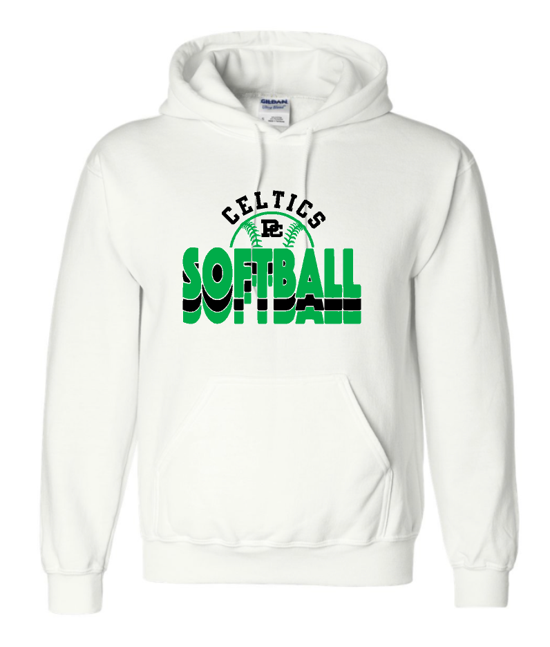 Design #2 PCHS Celtics Softball Gildan Hooded Sweatshirt Available in 3 different colors